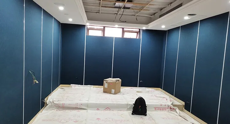 為了控制影音室的混響時間,還有低頻駐波,我們借助前墻的空間做了大面積的低頻陷阱,四個墻面都做了吸聲與擴散的聲學材料,外飾面為專用透聲布,為了讓進到影院更有感覺,墻面我們做了一定線性燈帶的修飾。