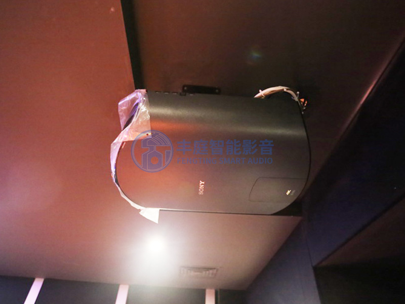 劉總作為視頻發燒友,對好萊塢大片接近癡迷的態度,在設計之初就考慮了180寸2.35:1的比例的大熒幕,追求巨幕觀影帶來的視覺沖擊,這也是好萊塢電影的拍攝比例的標準。為了消除環境的光污染,前墻做的遮光布吸光,另外三個墻面都是深顏色的透聲布修飾,在7米的投射距離下,選擇了sony的家用旗艦機598,全暗環境下,灰階使黑白位更加 均衡,將圖像色彩效果很好呈現出來