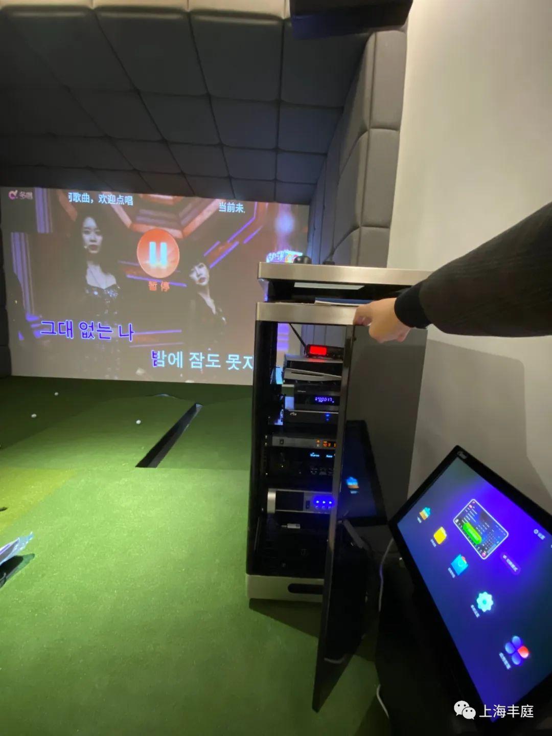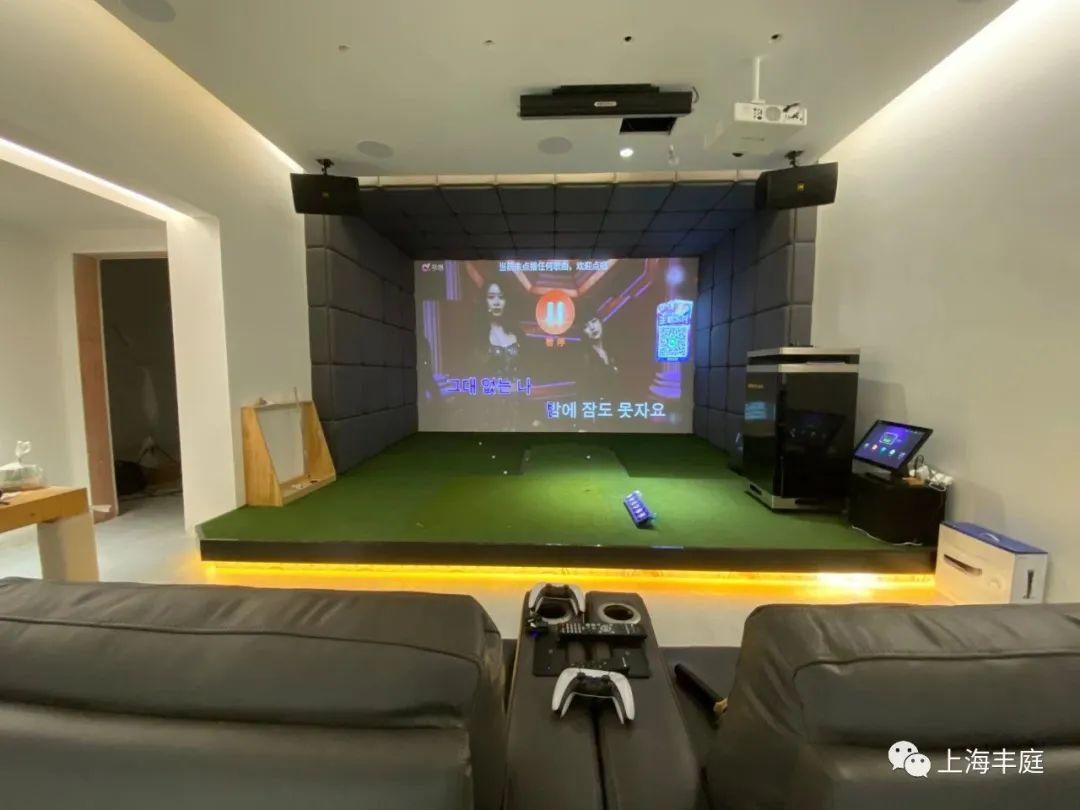 客戶王總是知名畫家,平時的愛好是作畫唱歌聽音樂看電影,他提到藝術靈感要在音樂和電影藝術中去尋找和升華,但是王總的女兒喜歡玩游戲和高爾夫,設計我們也對接了PS5和高爾夫模擬器進去,真正實現游戲高爾夫影音娛樂四合一的效果。