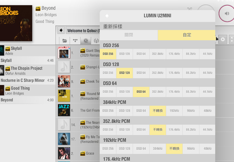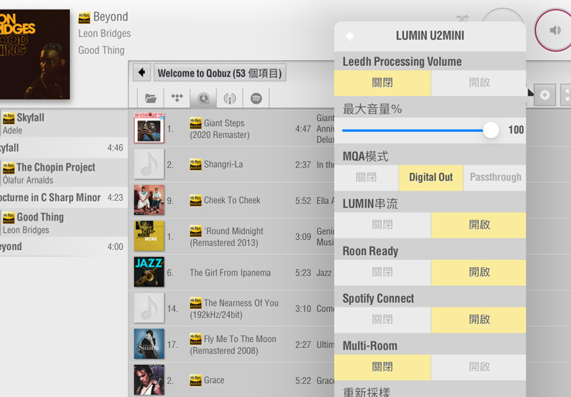 LUMIN自家專用APP,可說是數(shù)字串流器材的經(jīng)典代表了,數(shù)年前問市時就長差不多這樣,簡單友善直覺,功能強(qiáng)大,可看到重新采樣的選擇更多樣化了,這也有賴于硬件的提升才有辦法做到。